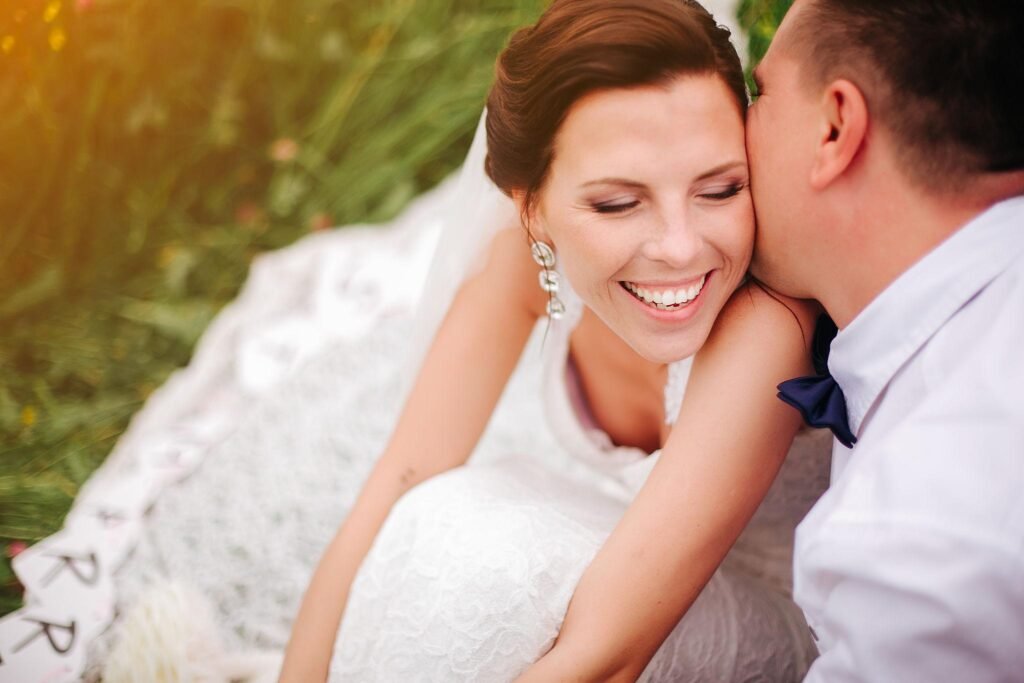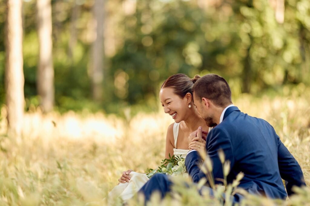 Les moments les plus naturels arrivent lorsque les mariés interagissent entre eux. Un sourire, un regard ou un geste tendre suffit souvent à créer une scène magnifique.